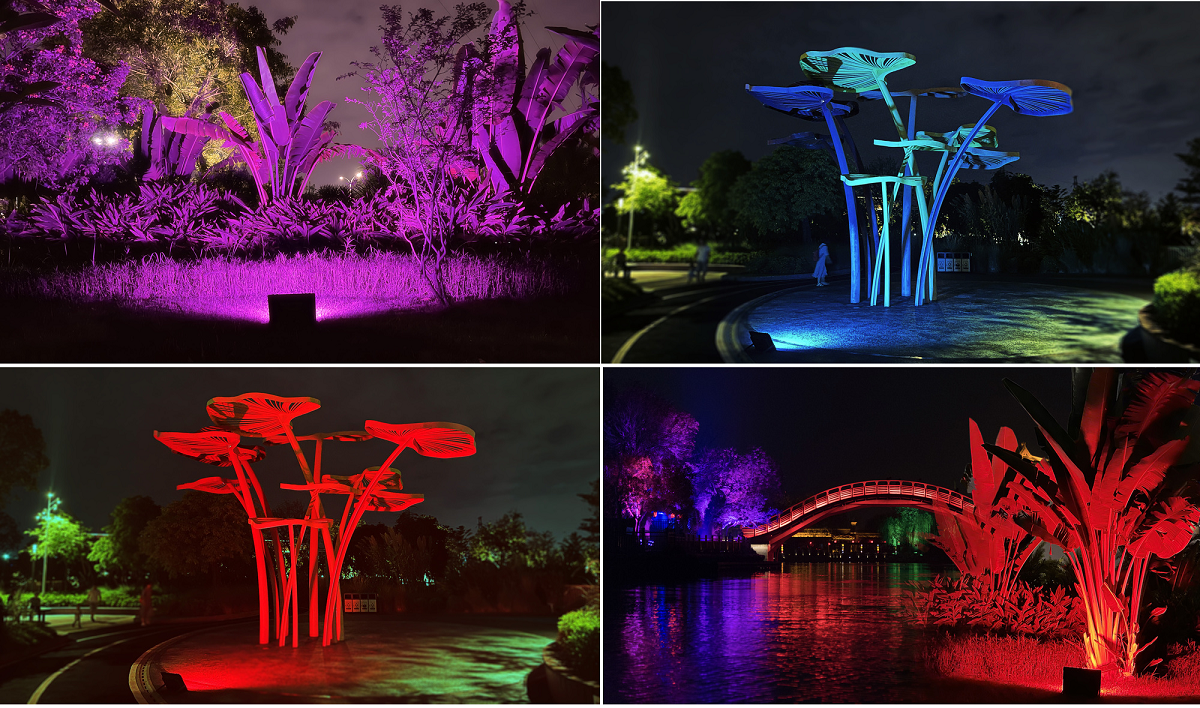 Đèn Pha Led Năng Lượng Mặt Trời Đổi Màu RBG