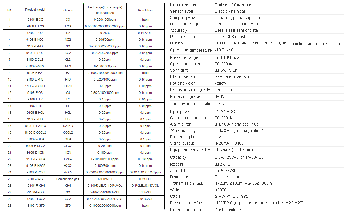 Máy đo nồng độ khí thông minh dạng cố định 9106-Series là thiết bị đo phát hiện các loại khí( đặc biệt khí độc) tích hợp thêm báo động. Máy sử dụng cảm biến thông minh hiệu suất cao từ Membrapor của Thụy Sĩ, cung cấp các loại khí phát hiện, bộ vi xử lý tích hợp thông minh để đảm bảo hiệu suất và độ ổn định của sản phẩm, giám sát nồng độ khí độc theo thời gian thực. Máy chủ yếu được sử dụng trong công nghiệp hóa dầu, luyện kim, khai thác mỏ, chữa cháy, khí đốt, bảo vệ môi trường, năng lượng điện, thông tin liên lạc, sản xuất giấy, in và nhuộm, dự trữ thực phẩm, cấp nước thành phố, xử lý nước thải, thực phẩm, sản xuất bia, nghiên cứu, giáo dục, quốc phòng và nơi khác.