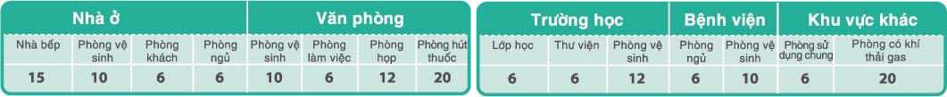 2. Tra cứu mức độ thay đổi không khí cần thiết mỗi giờ (lần/H)