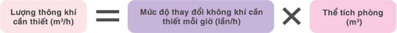 Ví dụ: Kích thước phòng: Diện tích sàn 16 (m2), Chiều cao là 2.7 (m), Thể tích = 16 x 2.7 = 43.2 m3. Nếu là văn phòng làm việc, độ thay đổi không khí cần thiết là 6 lần/giờ. Vì vậy, lượng thông gió được tính là: 6 x 43,2 = 259,2 m3/h.