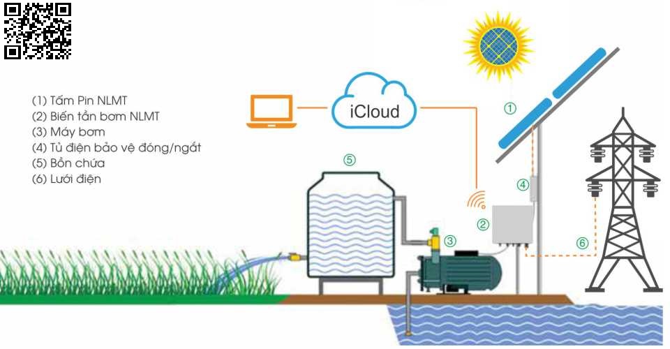 1. Bơm nước bằng điện mặt trời kết hợp điện lưới:
